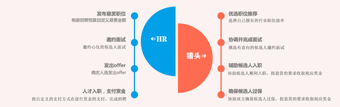 全猎网的悬赏模式首次实现了所有活跃猎头、HR等利用自有优势资源,让资源和人脉可以变现,建立快速招聘、人才共享、HR互助等以结果为导向的生态招聘模式,让招聘更有乐趣和价值,实现“全民猎头”开心接单、精准推荐的平台生存模式;同时我们彻底颠覆了传统收费模式,企业可按照自身成本预算进行精准招聘,真正实现了让企业用想花的钱找到想要的人,不满意可不付费的全新招聘模式。