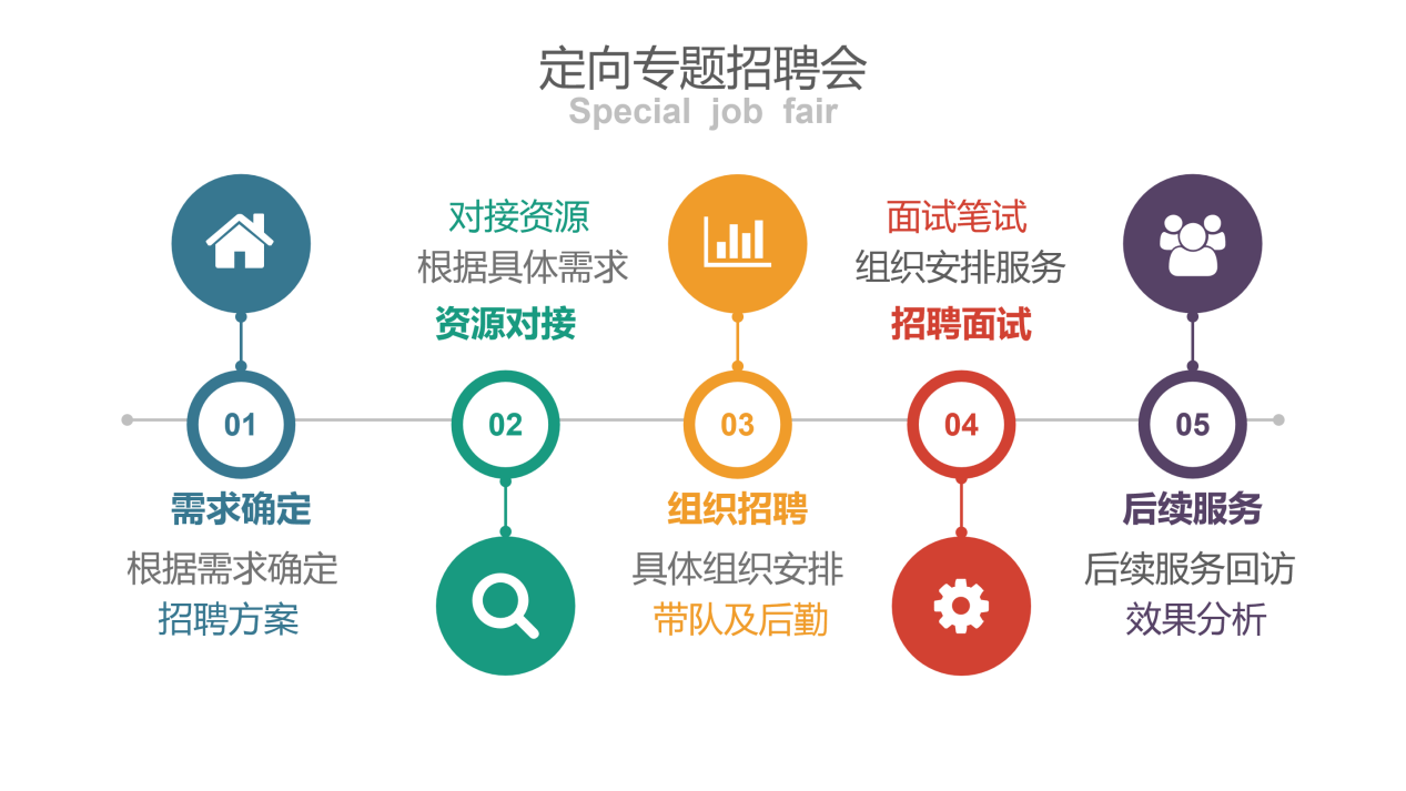 行政机关、事业单位定向专题招聘(校招及组团社招):需求整理、资源(高校)对接、职位整理发布(海报横幅等制作)、带队服务、组织初试、复试、入职跟踪、效果统计、后续服务等。
